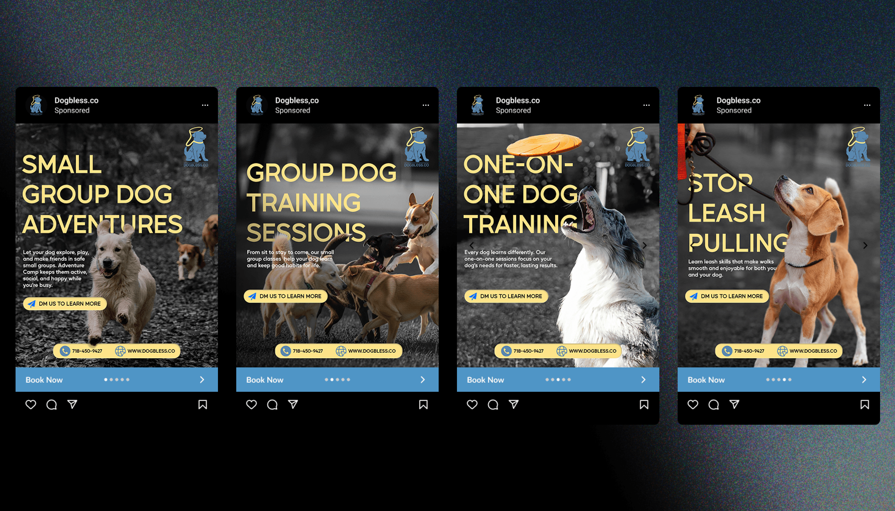 Designed for the everyday scroll. This work turns the Dogbless identity into living communication across posts and ads. Familiar, clear, and quietly confident, each piece feels connected, allowing the brand to show up consistently without repeating itself.